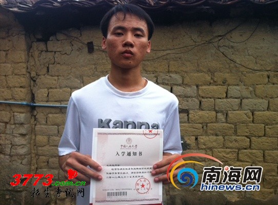 海南省澄迈县高考文科状元张昌能通过自主招生,被中国人民大学新闻学院录取,高考考了825分。因家贫无力负担学费,期盼社会爱心人士给予帮助。(南海网见习记者 黄丹摄)
