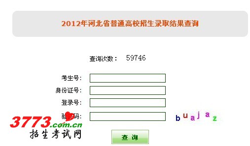 2012年河北普通高校招生录取结果查询系统已开通,点击http://xxcx.hebeea.edu.cn/gaokao/examjsp/highexam/highExamQuery-Hebeea2012.jsp进行查询