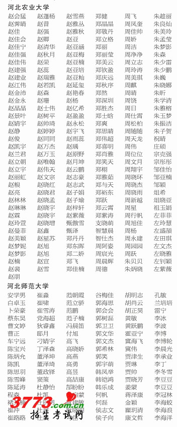 2012年河北高招本科二批录取名单(30日发布)