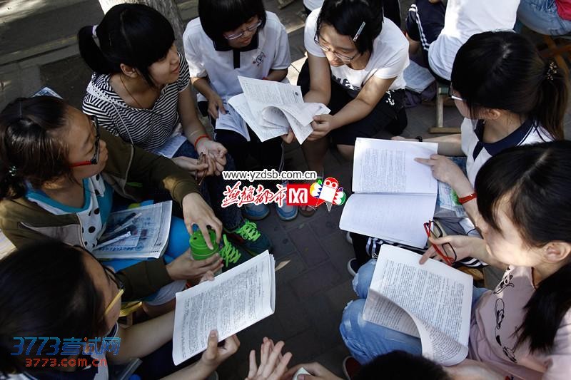 十五中考点外,早上进场前考生聚在一起抓紧时间复习。燕赵都市报记者孟宇光见习记者霍艳恩/摄
