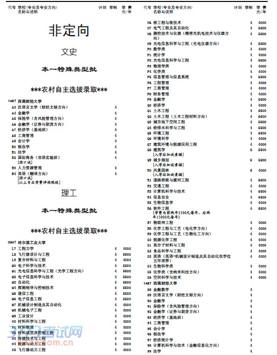 2014哈尔滨工业大学西南财经大学农村自主招生计划