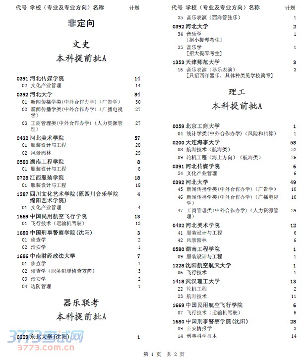 附件:本科提前批A二志愿征集计划