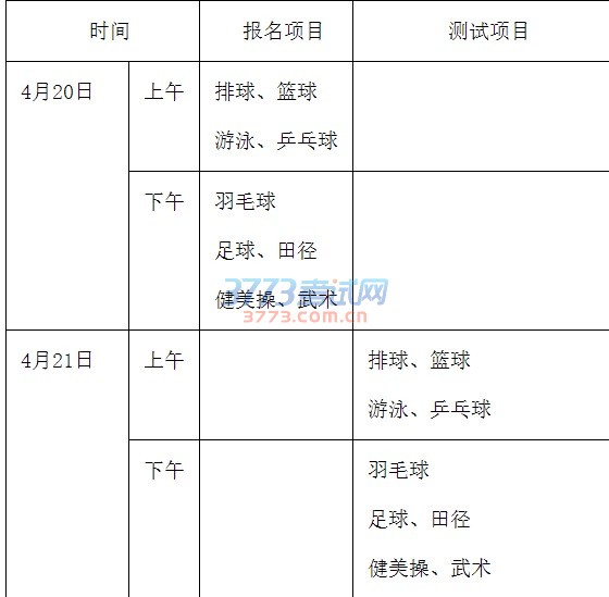 附件:2017年河北省体育特长生高考加分专项测试时间安排