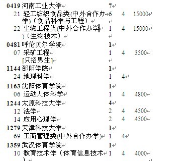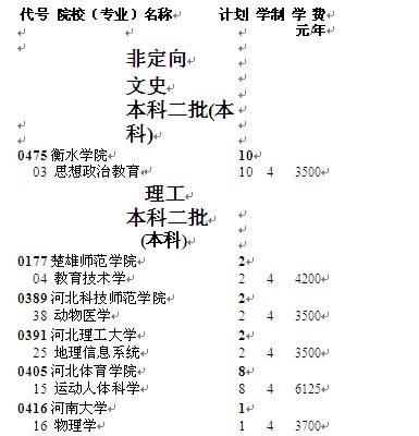 年在河北省招生的普通高校分校分专业征集志愿计划