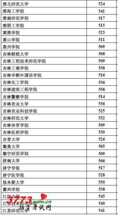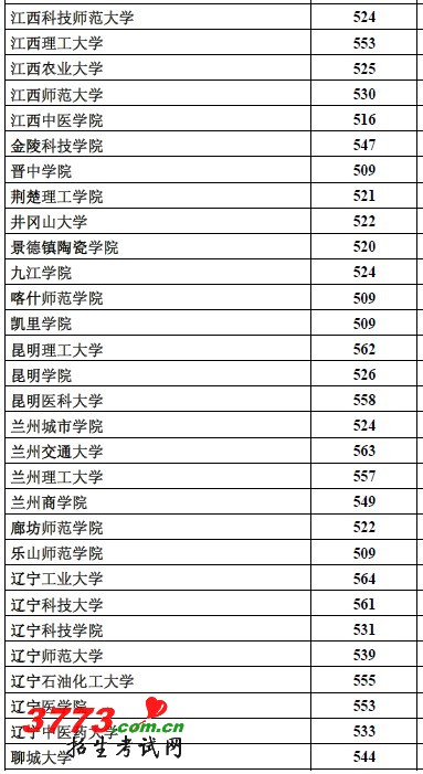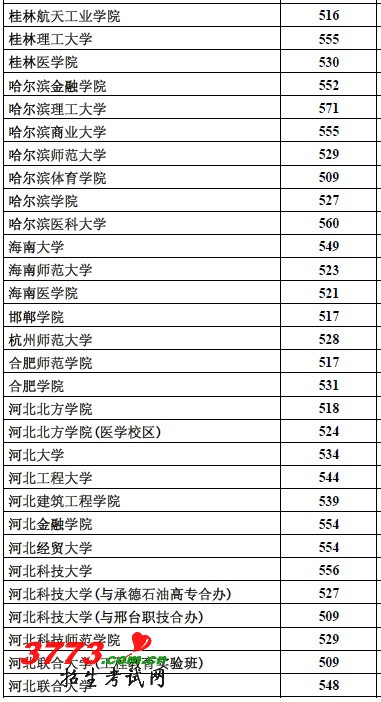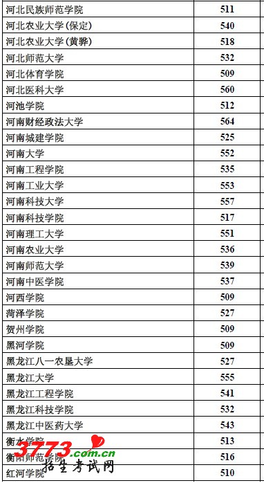 2012河北高考二本批对口本科批一志愿平行投档分数线