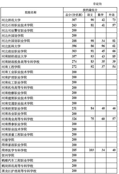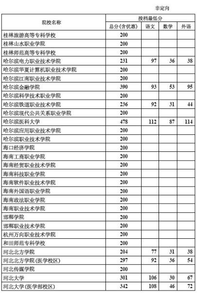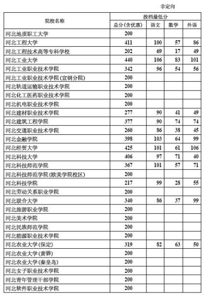 2012河北专科批一志愿投档12所院校投档线超本二线