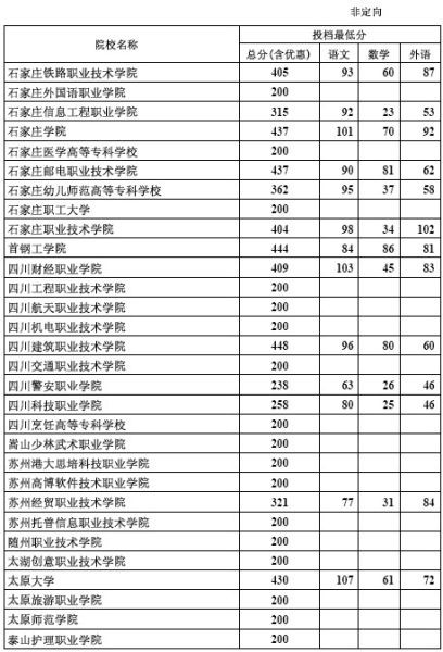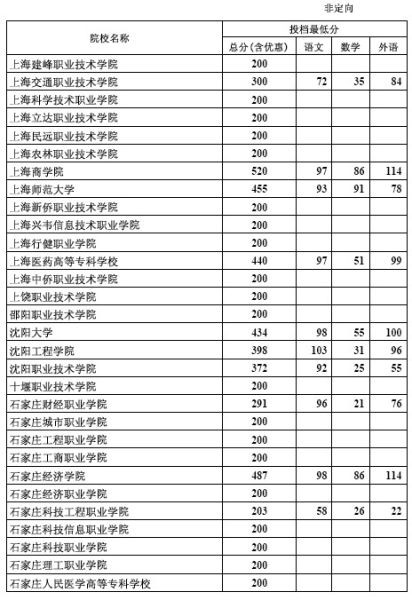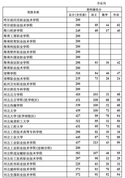 2012河北专科批一志愿投档12所院校投档线超本二线