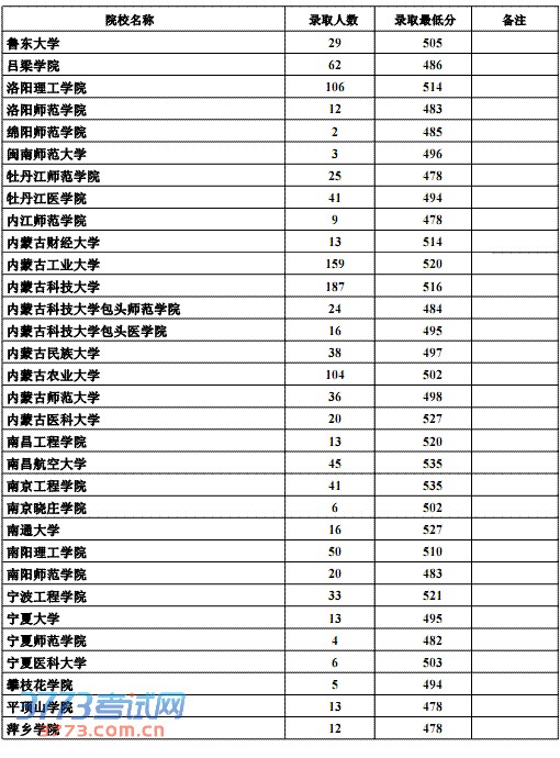 2013河北高考二本理科院校录取分数线(含录取人数)