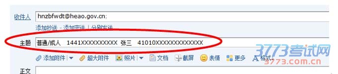 (一)高考成绩证明:请将填写完整的高考成绩证明申请表(见附件一)和本人身份证的照片发送至预约邮箱(要求能看清关键信息),邮件主题需写清:普通/成人 准考证号 姓名 身份证号(便于工作人员查找)(见下图1)。