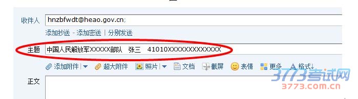 (三)录取批次证明:除办理录取审批表需要的材料(见网上预约二)外还需将部队介绍信(必须盖有部队的章)的照片发送至预约邮箱(要求能看清关键信息),邮件主题需写清:部队番号 姓名 身份证号(便于工作人员查找)(见下图3)。