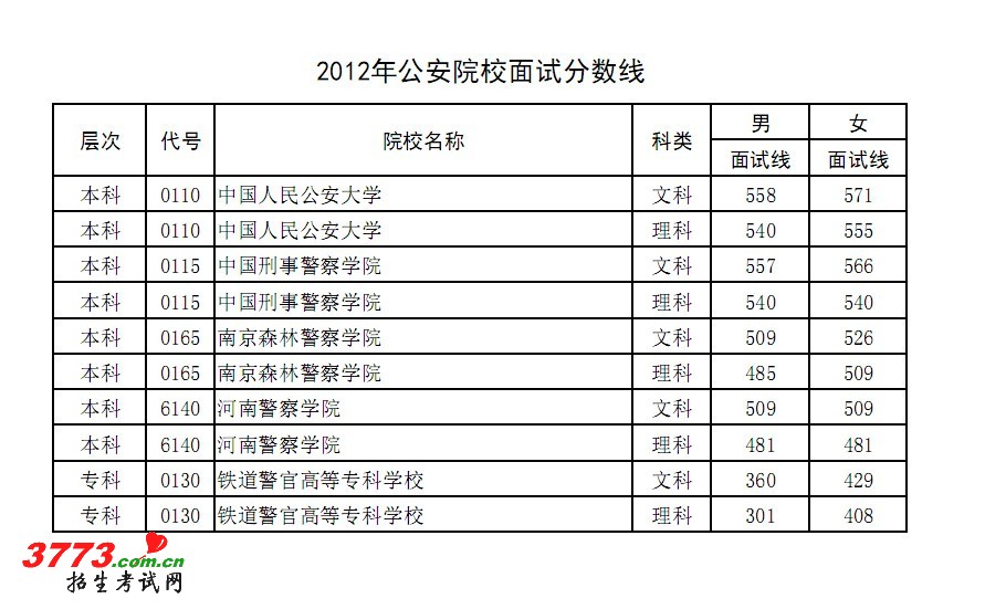 2012年河南公安院校面试分数线