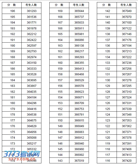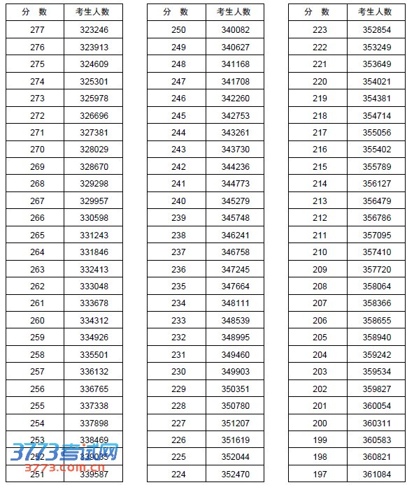 2013河南高考分数段一分一段统计表(理科)