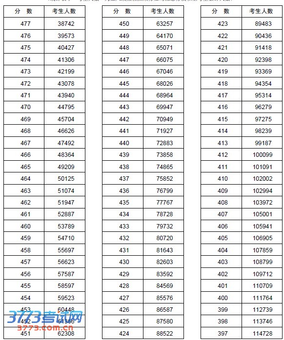 2013河南高考分数段一分一段统计表(理科)