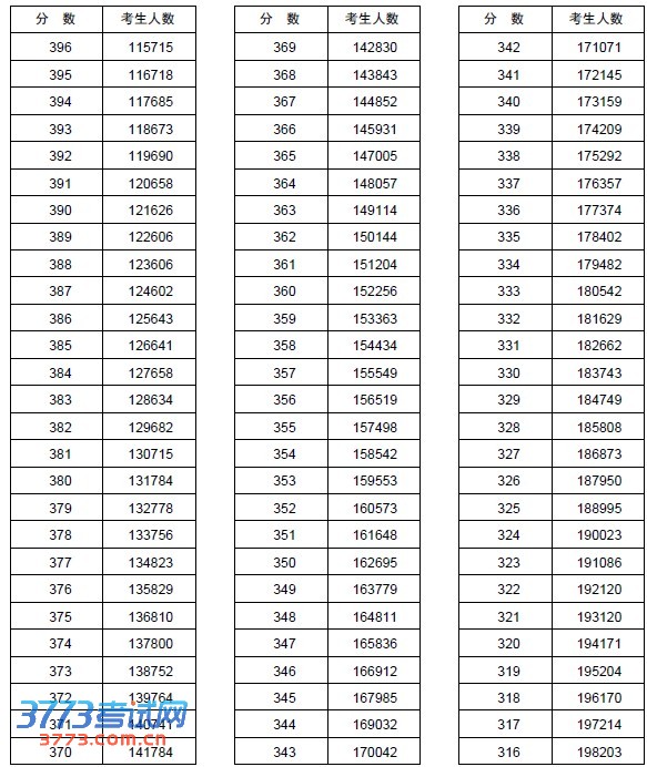 2013河南高考分数段一分一段统计表(文科)