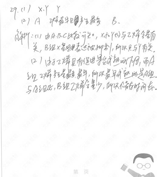 2015高考新课标全国2卷理综生物部分答案