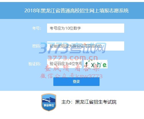 考号: 考号应为10位数字密码: 初始密码应为身份证号码后6位验证码: 验证码应为4位字母 登录 主办:黑龙江省招生考试院