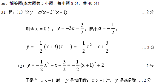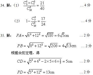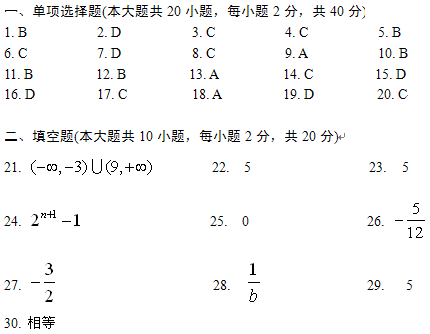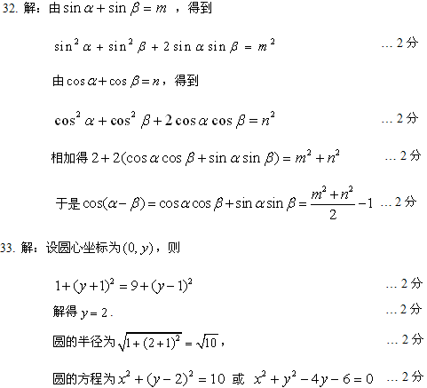 黑龙江2009年中职升高职数学试题答案及评分参考
