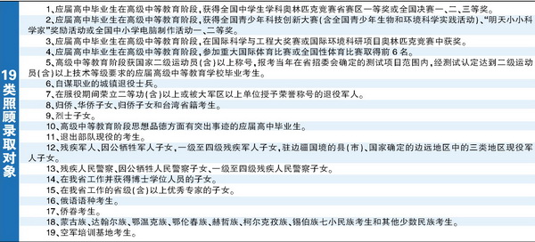 近日,黑龙江省2010年普通高校招生各类照顾录取对象申报、审查工作正式启动,19类受照顾录取对象的认定范围和标准也同时公布。此次申报、审查工作截至4月9日。