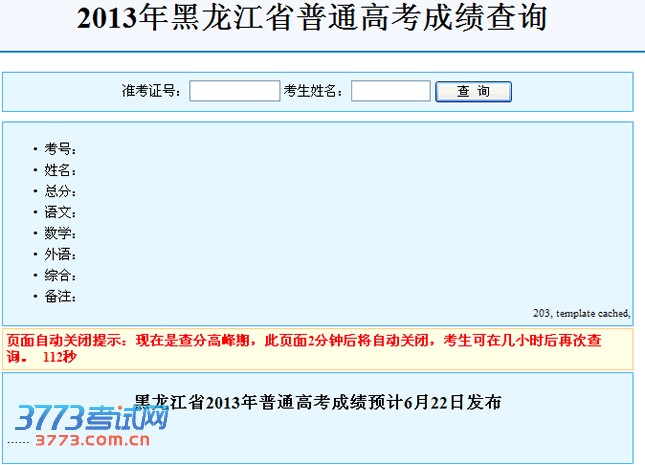 2013黑龙江高考成绩查询查分入口