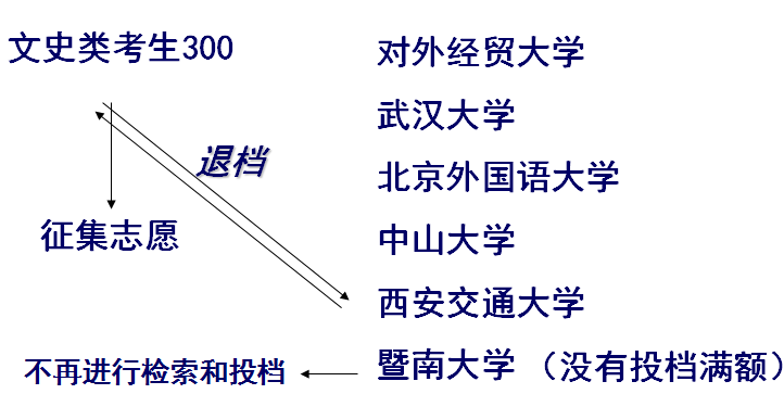 2、按考生的志愿顺序逐一检索投档。
