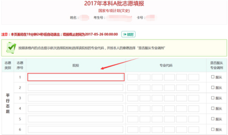 (二)考生应该在规定的时间内尽早完成志愿填报,避免在截止时间临近时“确认提交”志愿,可能会因为网络拥塞导致不能正常提交志愿,甚至偶遇当地意外停电、网络中断等不可预知的情况,造成无法填报志愿。