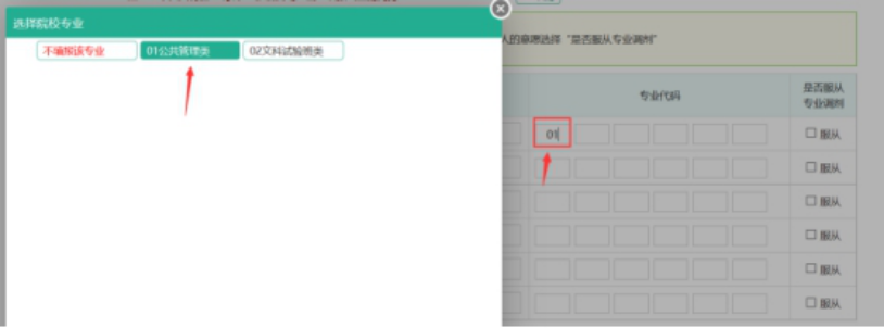 对志愿填报的学校服从专业调剂的,点击“服从”复选框。
