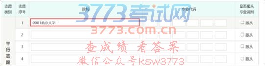 对志愿填报的学校服从专业调剂的,点击“服从”复选框。