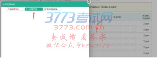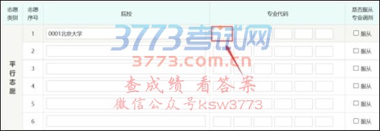 选择院校后,点击专业代码输入框,系统会弹出专业选择框,点击专业名称,自动选择该专业,按此方法依次填报其它专业志愿。