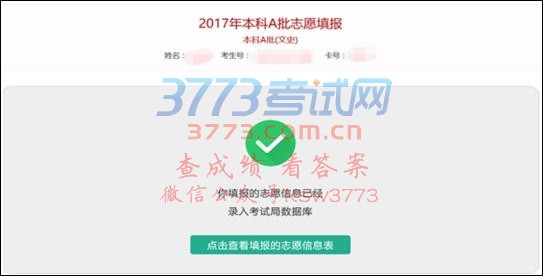 提交成功后点击“查看填报的志愿信息表”按钮可以查看已经保存的志愿。