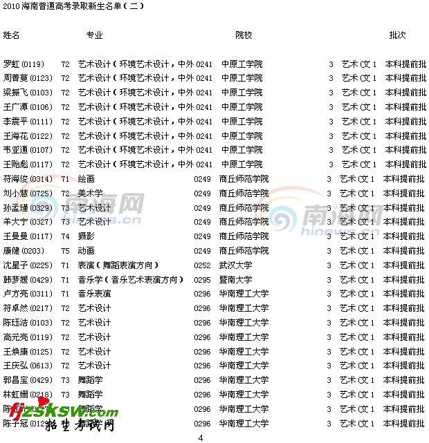 图片说明:2010海南普通高考录取新生名单(二)