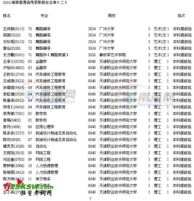 2010年海南省高考录取名单已经开始由海南省考试局陆续公布,今天公布的是2010年海南省普通