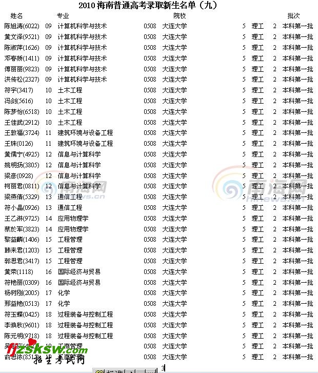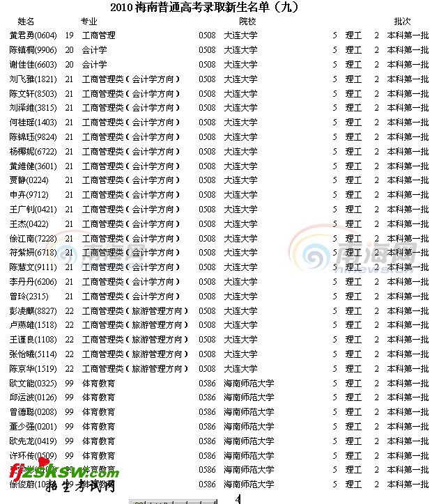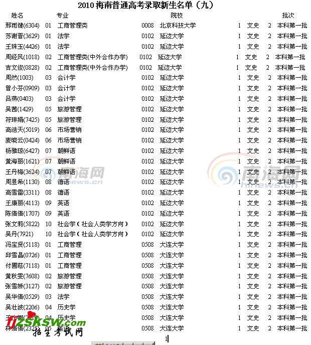 2010年海南省高考本科第二批体育类征集志愿计划表