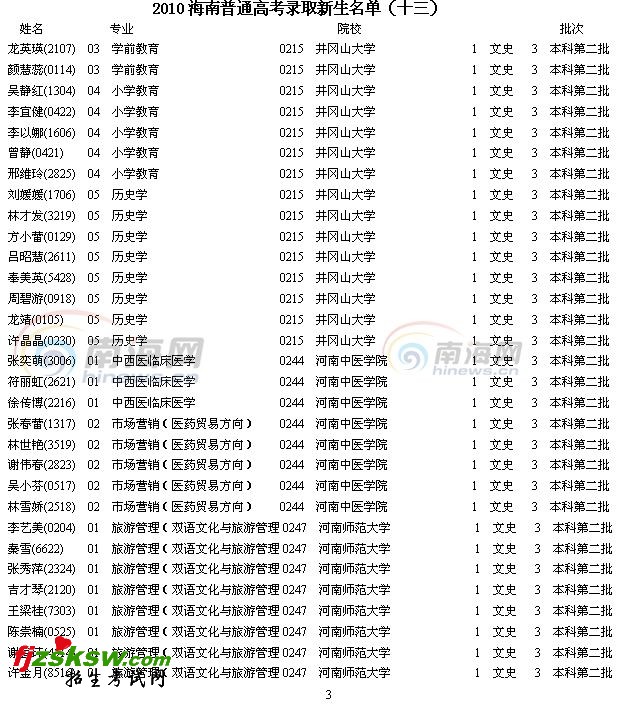2010海南普通高考录取新生名单(十三)
