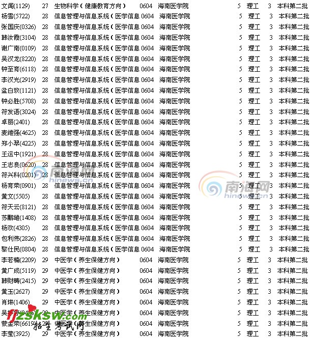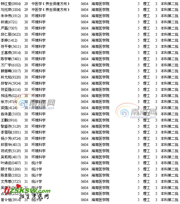 2010年海南省高考录取名单已经开始由海南省考试局陆续公布,今天公布的是2010年海南省普通高考录取新生名单(二十九)。