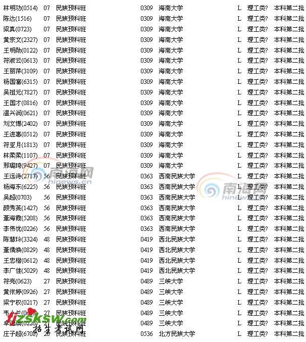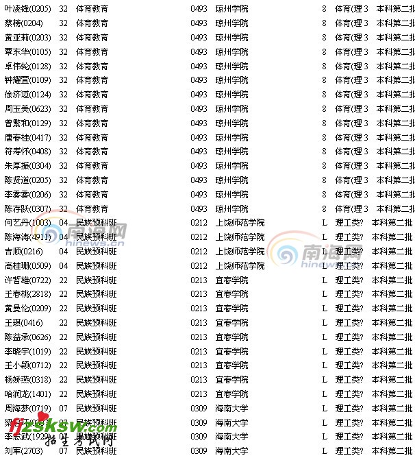 2010年海南省高考录取名单已经开始由海南省考试局陆续公布,今天公布的是2010年海南省普通高考录取新生名单(二十九)。