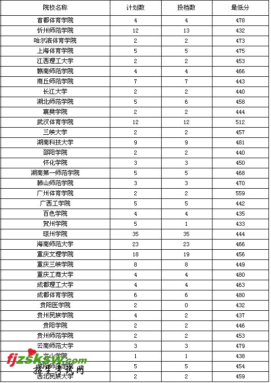 2011年海南省普通高校招生本科第二批体育类平行投档分数线