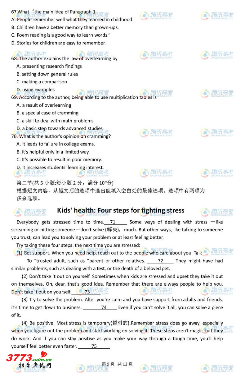 2012年海南高考英语试题答案发布