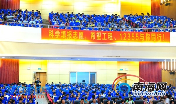 7月28日上午,由南海网等媒体联合共青团海南省委、海南省教育厅、海南省考试局等单位,举办的2013年“圆梦行动爱心助考”高考志愿填报公益讲座在海南澄迈县启动。(南海网记者秦彦摄)