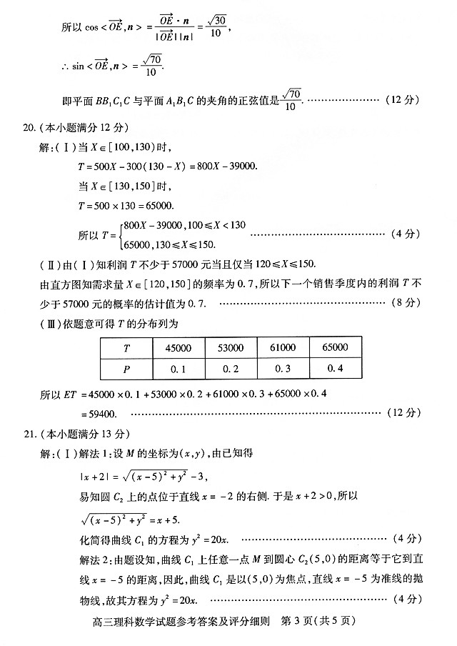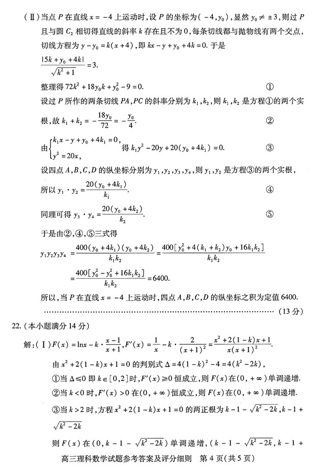 武汉市2014届高中毕业生五月模拟考试理科数学试题参考答案及评分细则