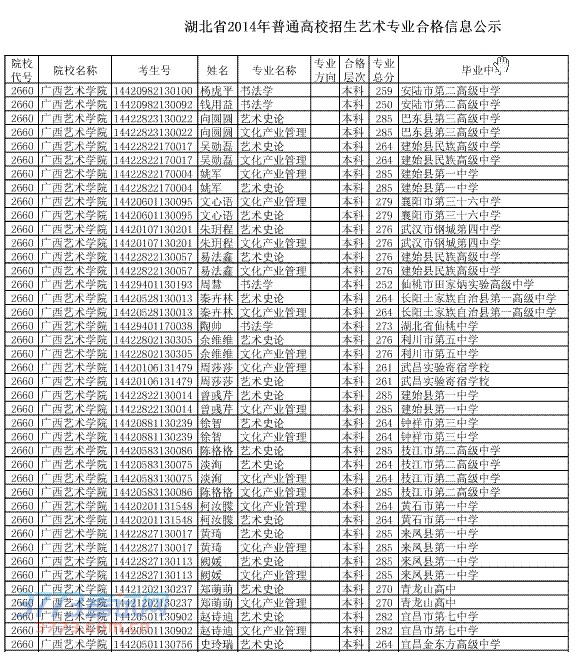 2014广西艺术学院湖北艺术专业合格信息补充公示