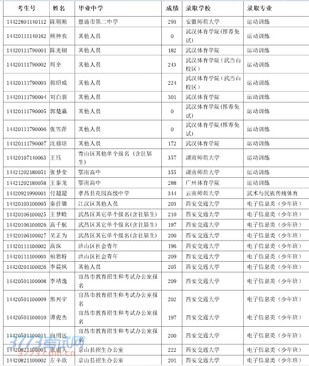 2014年7月10日湖北提前批本科和武汉体育学院优秀考生投档