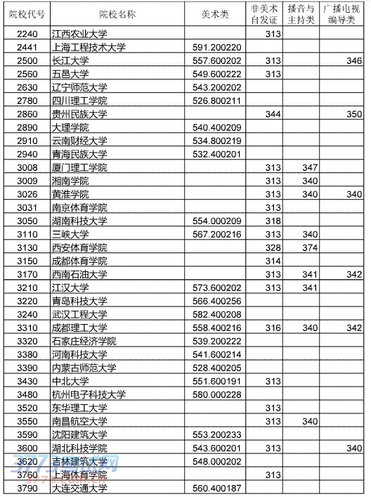 湖北省2014年普通高校招生艺术本科(二)录取院校美术类平行志愿和非美术类第一志愿投档线