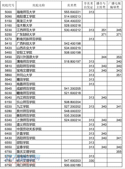 2014湖北艺术本科二院校美术类和非美术类投档分数线