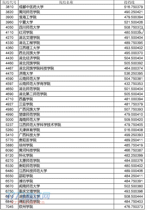 2014湖北高考体育类本科平行志愿投档分数线