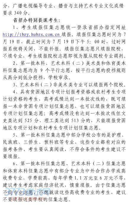 2014湖北一本及专项计划艺术体育本科征集志愿公告