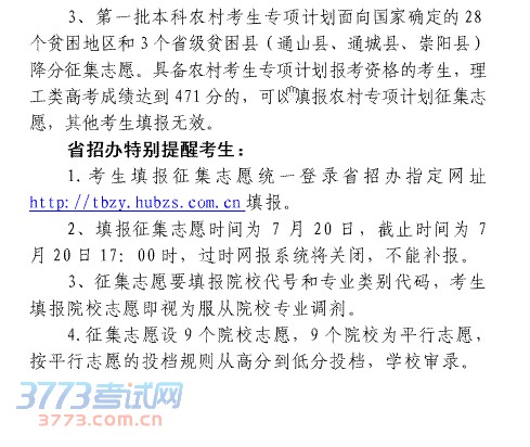 2014湖北高考一本理科专项计划第二次降分征集志愿公告