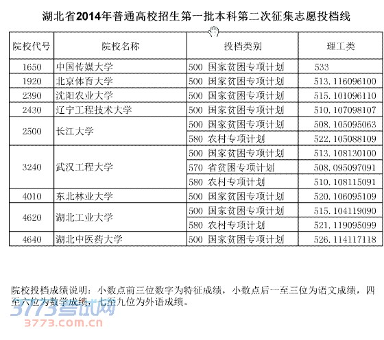 2014湖北高考一本理科专项计划第二次降分征集志愿公告