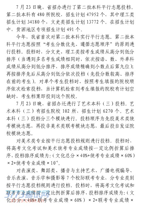 7月23日进行第二批本科、艺术本科(三)投档 2014年7月23日湖北高考二本艺术本科(三)投档