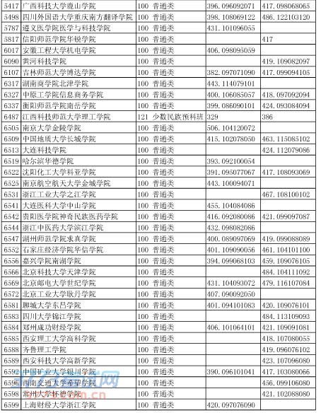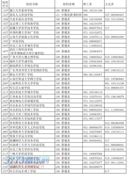 湖北省2014年普通高校招生第三批本科征集志愿投档线