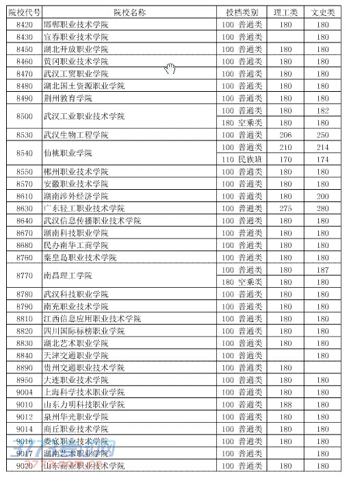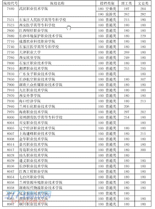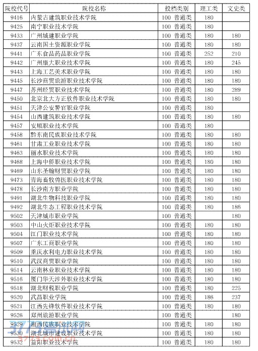湖北省2014年普通高校招生第四批高职高专(二)录取院校第一志愿投档线